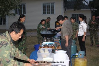 拓展(zhǎn)運動(dòng)一(yī)直(zhí)是(shì)受人(rén)喜爱(ài)的个(gè)人(rén)挑戰與(yǔ)团(tuán)隊競賽相結合的體(tǐ)验(yàn)活動(dòng),也(yě)是(shì)近(jìn)年(nián)来(lái)發(fà)展(zhǎn)^快(kuài)的新(xīn)興培訓項目。本(běn)次(cì)拓展(zhǎn)活動(dòng)項目包(bāo)括齊眉棍、七巧闆、信任背摔、孤島(dǎo)求生(shēng)、过(guò)電(diàn)网(wǎng)、紅(hóng)黑(hēi)商戰和(hé)畢業牆(qiáng)等7項;尤其(qí)在(zài)畢業牆(qiáng)环(huán)节(jié)中(zhōng),全體(tǐ)參訓人(rén)員充分(fēn)發(fà)扬了(le)团(tuán)隊合作(zuò)的精神,全部(bù)順利通(tòng)过(guò)了(le)高(gāo)度达(dá)到(dào)4.40米(mǐ)的超高(gāo)畢業牆(qiáng)。第(dì)一(yī)天(tiān)的訓練結束(shù)後(hòu),參訓員工親自(zì)下廚,利用(yòng)有(yǒu)限的食材做出了(le)豐盛的晚(wǎn)餐。晚(wǎn)上(shàng)全體(tǐ)員工露(lù)營在(zài)帐篷(péng)里(lǐ)。